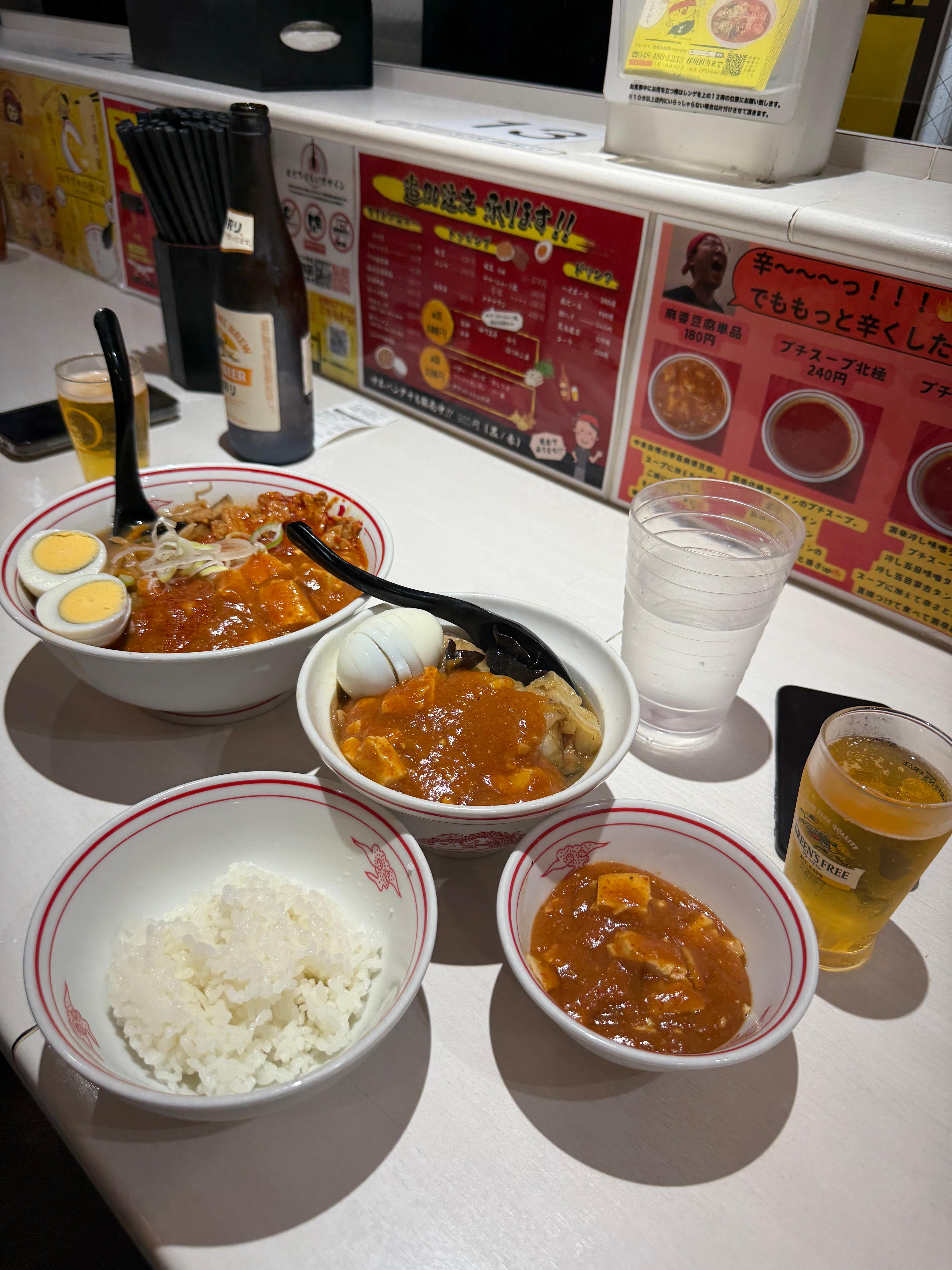 비주얼은 살짝 마파두부덮밥? ㅋㅋㅋ 근데 비주얼뿐만이 아니라 맛도 진짜 마파두부맛.. 마파두부 + 라멘 이 조합 뭐지.. 뭔가 특별해 ㅎㅋㅋ 컵라면으로 먹은 맛이랑은 좀 많이 달랐다.. 컵라면은 라면스프 특유의 맛이 강해서 그냥 음~ 매운 일본 컵라면 이런 느낌이었다면 얘는 마파두부에 밥 비벼 먹고, 좀 맑은 라멘에 마파두부 토핑되어있는 너낌.. 근데 그 소스가 엄청 매움!!
