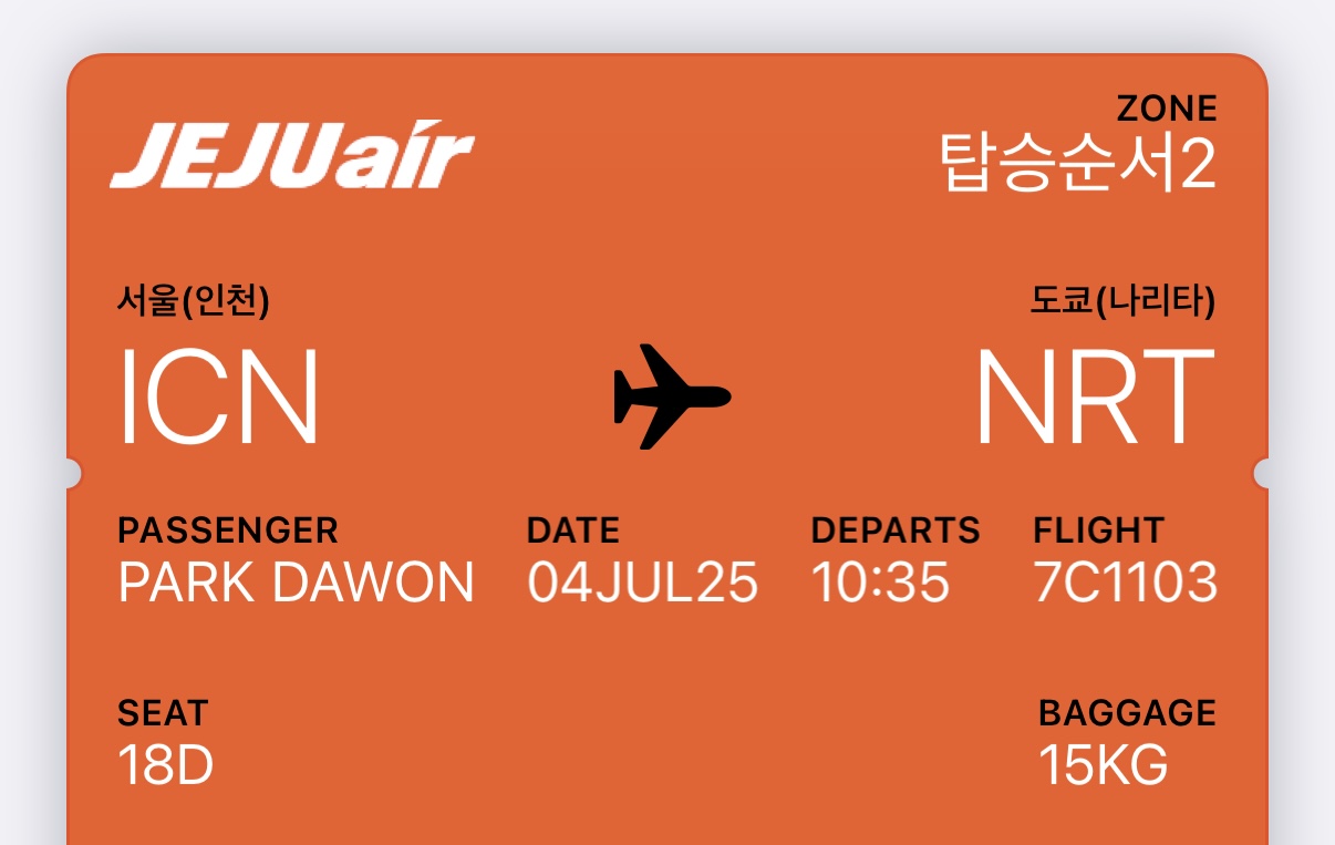 여행은 7월4일부터 7월 7일! 다녀왔고, 인천공항에서 제주항공 타고 나리타 공항에서 내렸다.