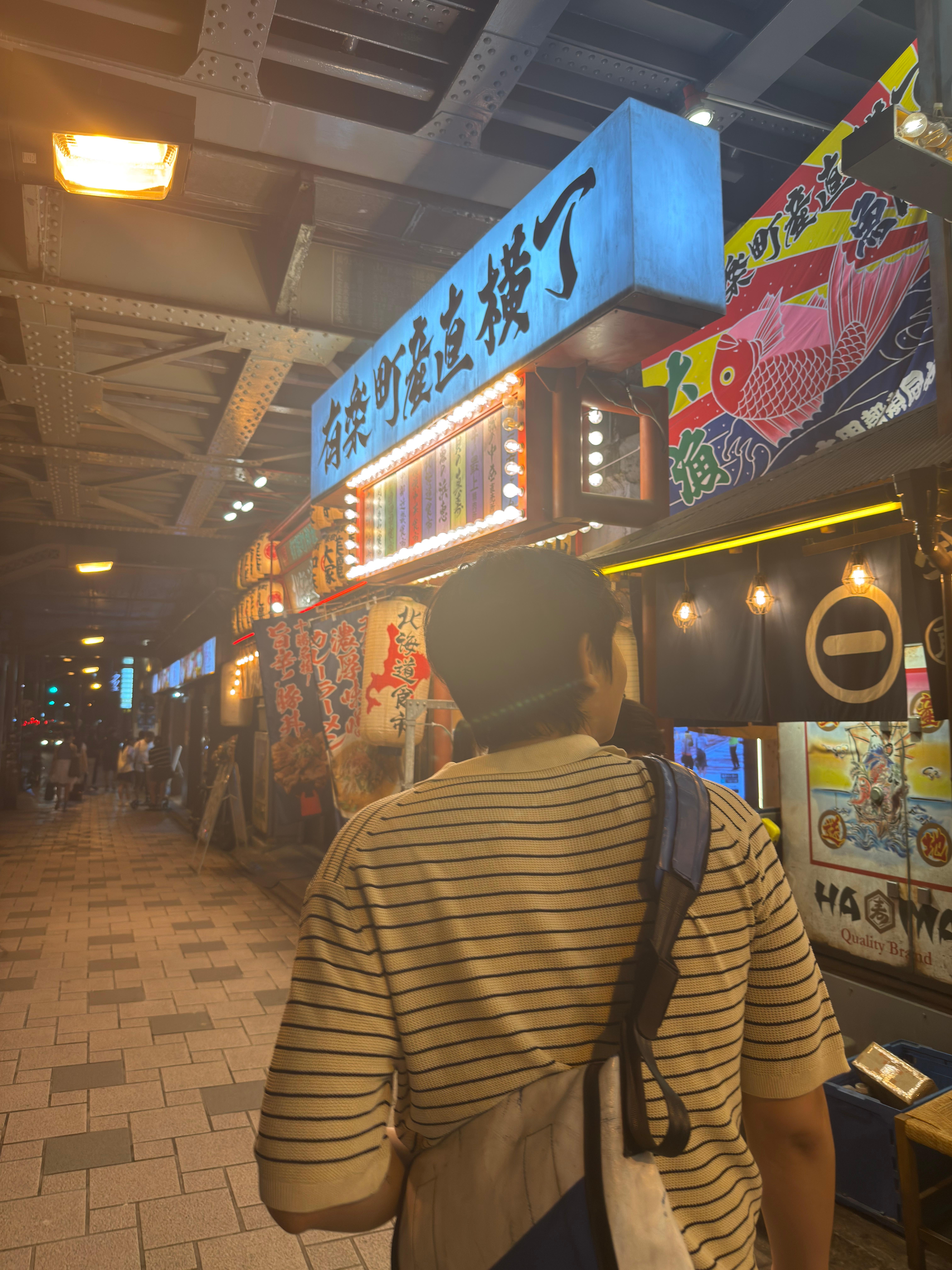 몬자야키 먹으러 걸어가는 길이 엄청 낭만적이었던 게, 서울에 남영역처럼.. 기차가 그 머리 위로 지나다녀.. 철길이 있어! 그 밑에 지나가면 철길 아래 가게들이 여럿 있는데 그중 하나였어!! 그래서 되게 좀 소음이 심하긴 한데 서울에선 그 감성 못 느껴.