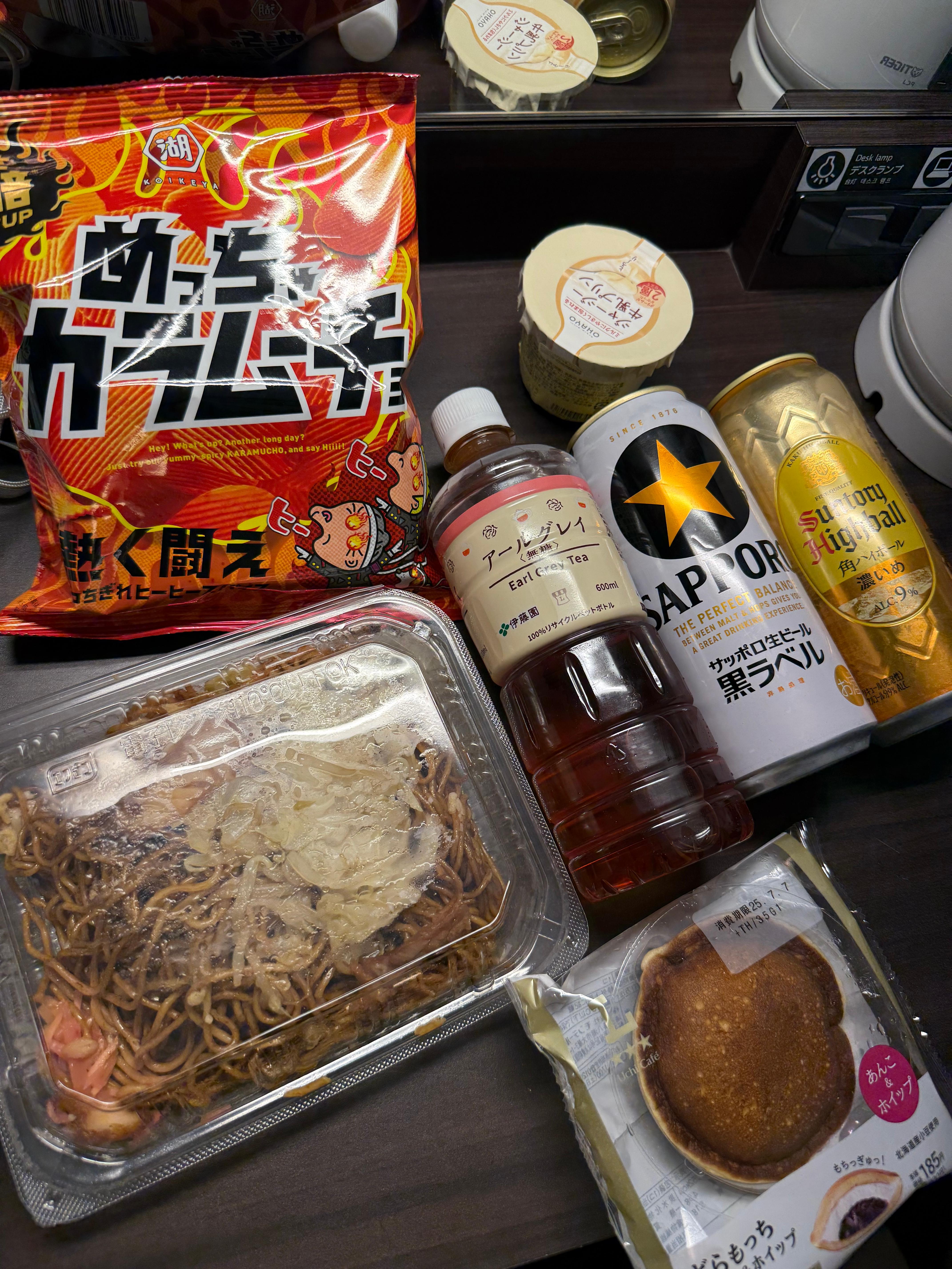 그거 진짜 너무 맛있는 거야 ㅜㅜ 로손에서 샀는데.. 진짜로,.. 제발 꼭 먹어. 단팥빵? 이런 너낌 아니고 안에 그 모찌같은게 들어있어 완전 쫀덕쫀덕 하고 팥앙금도 겁나 맛있고 진짜 입에서 살살 녹음 ㅡㅡ 빵은 팬케이쿠 느낌! 감자칩은 진짜 맵다길래 기대했지만 역시 ㅋ 한국인에겐 그저 그런 맵기였다 ^-^ 맥주는 난 배불러서 안 먹었고 남친이가 다 머것다~