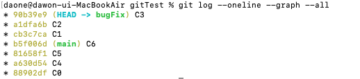 - echo 'bugFix2' > 2 && git add . && git commit -m "C2"